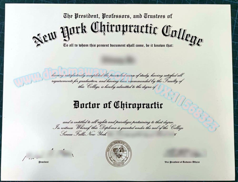 美国纽约脊椎指压疗法学院博士学位证书制版案例图,美国New York Chiropractic College diploma模板,三天补回一张美国NYCC文凭证书稳妥指南,花费多少购买纽约脊椎指压疗…