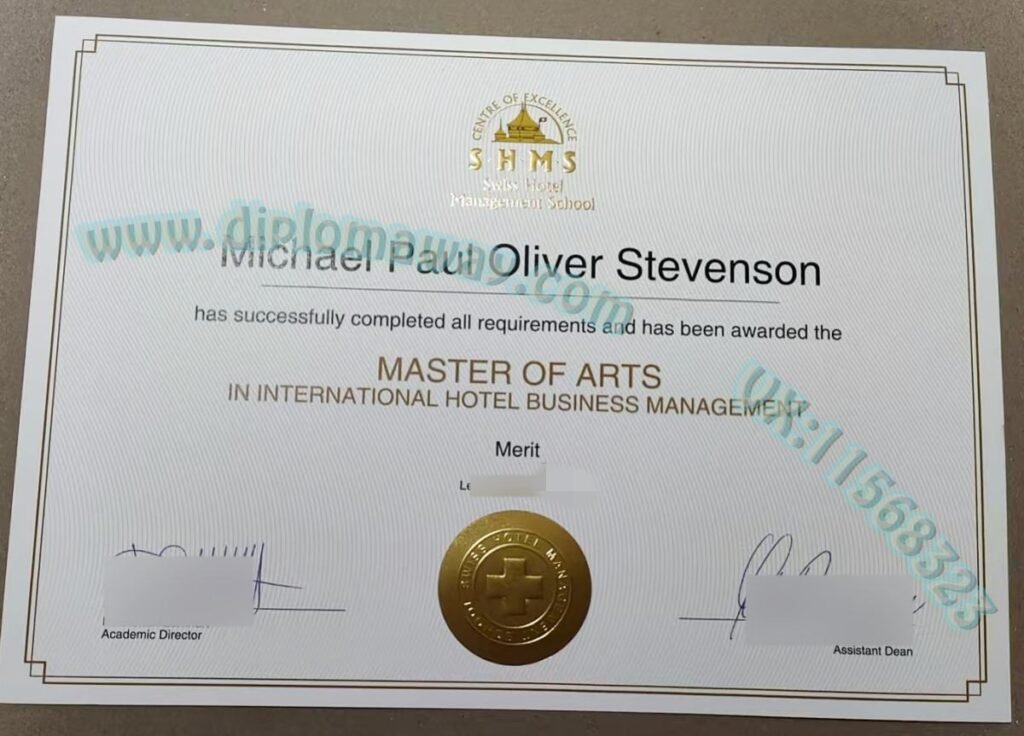 扫描件定制毕业证瑞士SHMS毕业证与瑞士酒店管理大学纸质文凭来了 Leave a Comment / 扫描件定制毕业证 / info@diplomaway.com 瑞士SHMS硕士学位证书案例分享图,瑞士